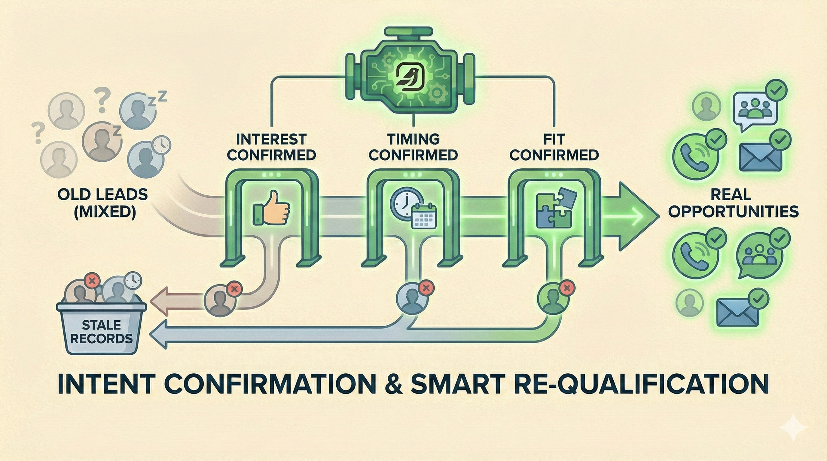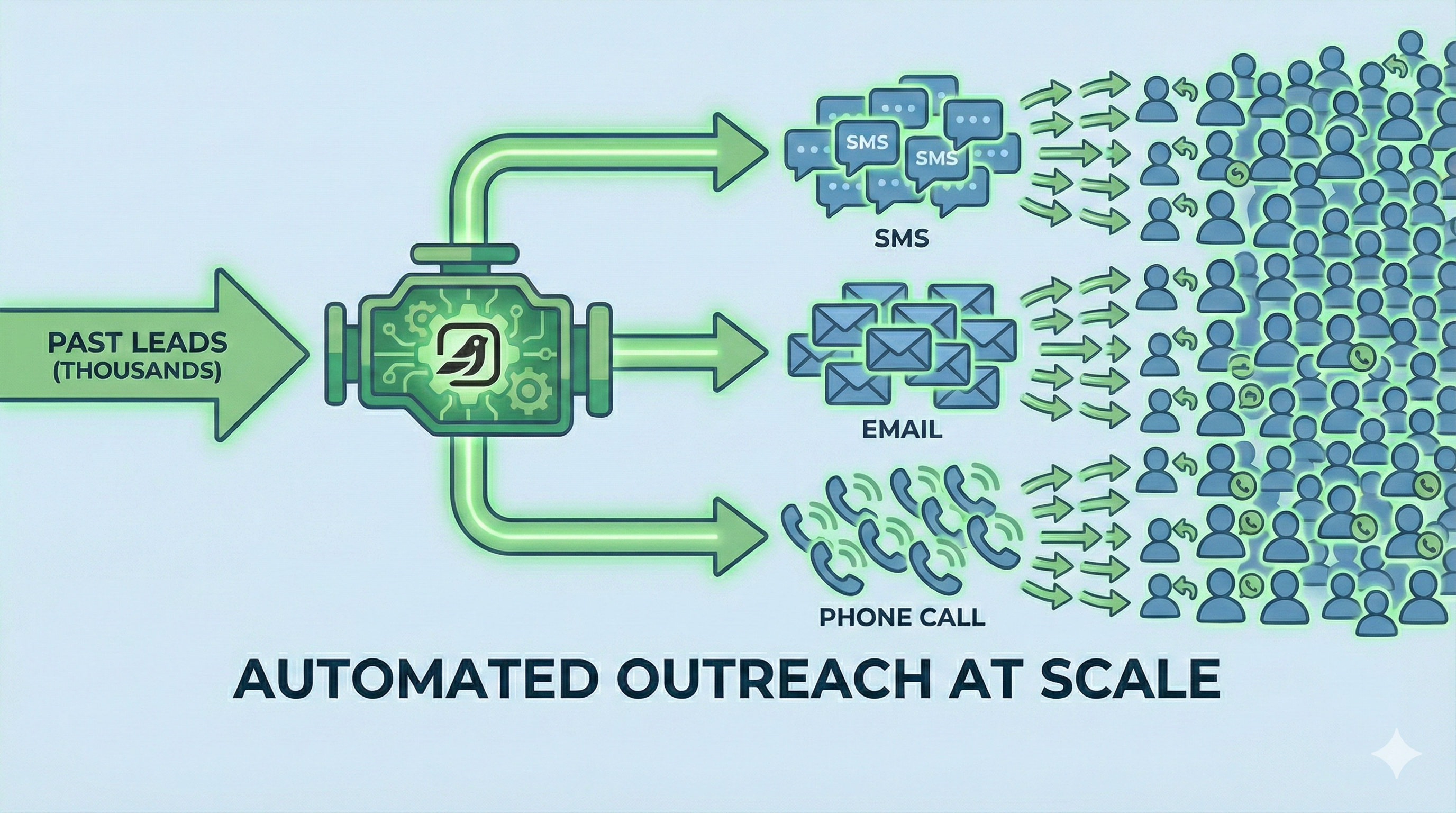 Re-engage past leads via SMS, email, or phone call - automatically.