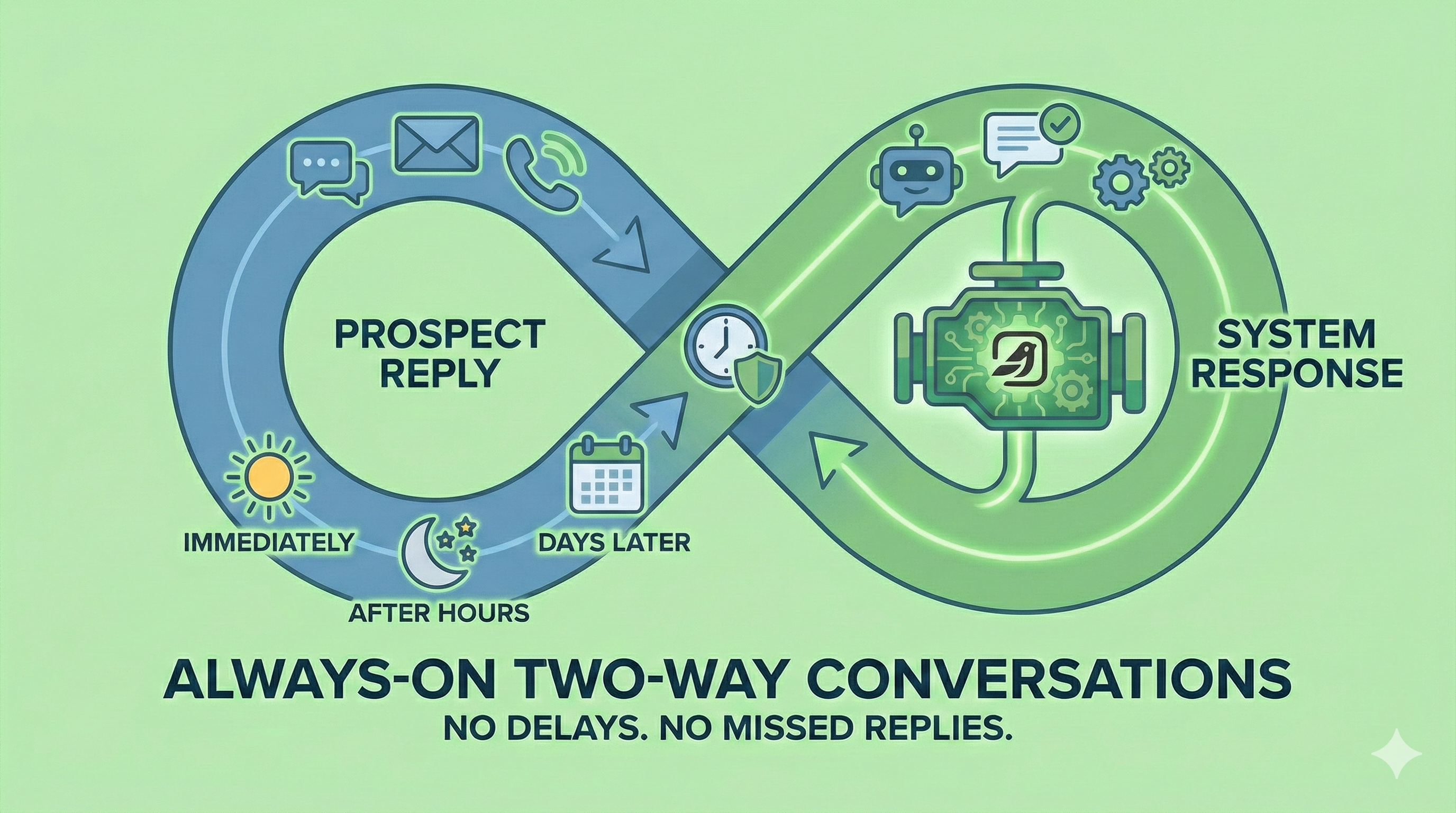 The system can contact thousands of people in a short window, restarting conversations without adding workload to your team.